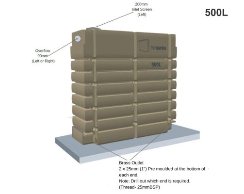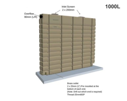 A 25mm sealed brass outlet is moulded into both ends on the bottom. Drill out and attach the ball valve / pump according to your requirements.