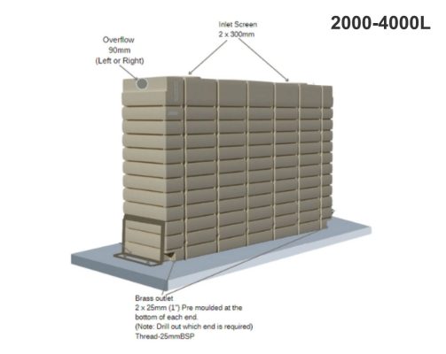 2000L - 4000L : 2x 300mm Inlet Screen is located on both ends at the top of the tank.
