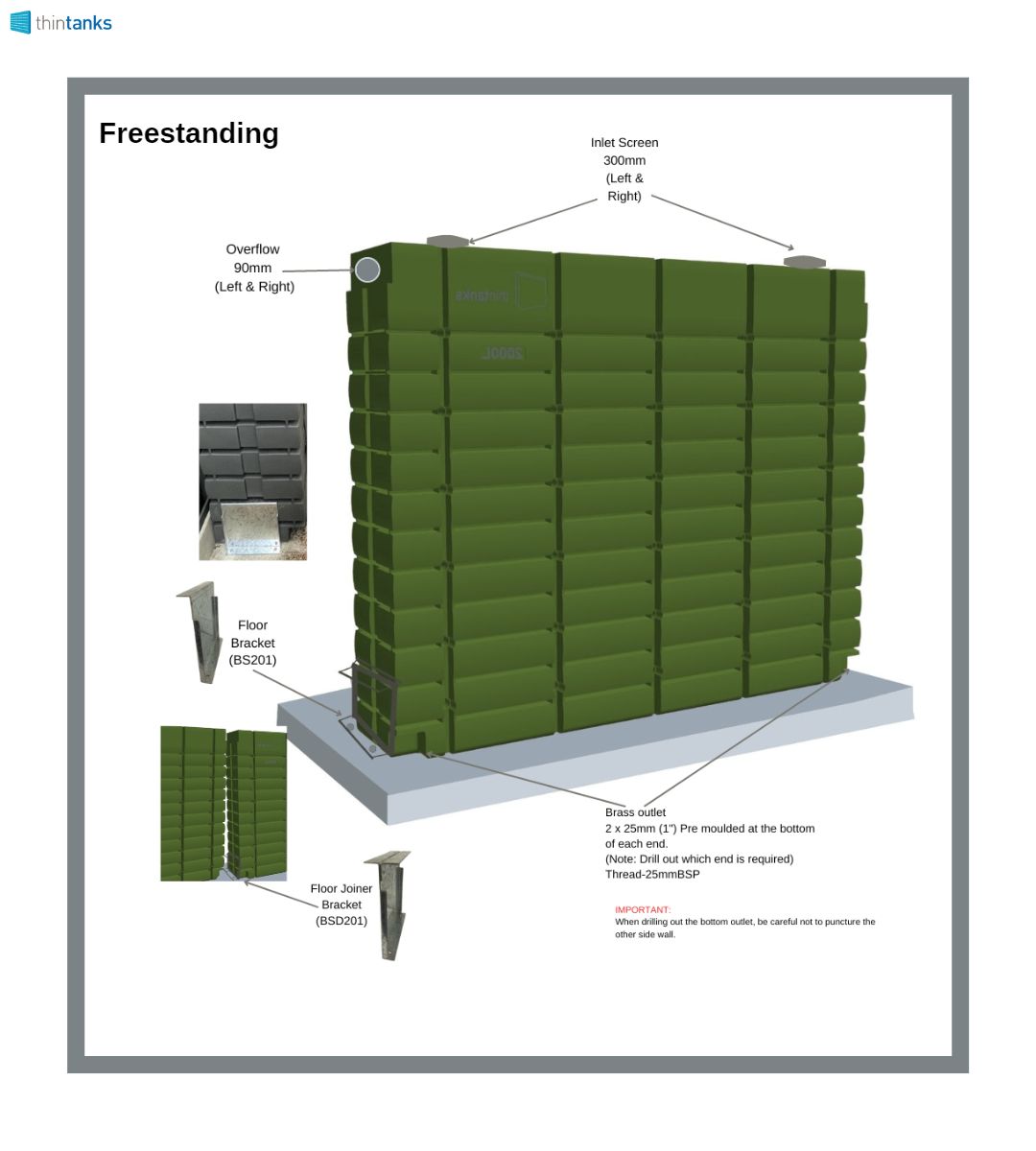 It is important for all ThinTanks™ to stand on a solid base and completely level surface that will not settle or move when wet.