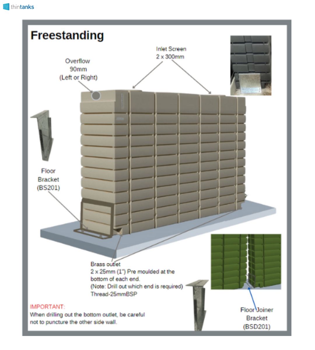 Joiners are installed between tanks to secure multiple freestanding tanks together.
